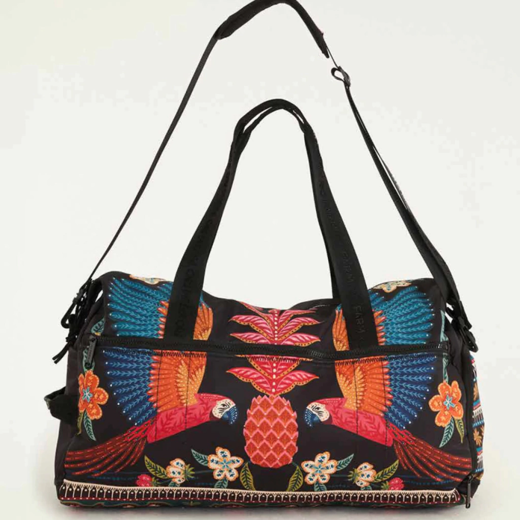 Bolsa findi samba das araras. compacta, elegante e pronta para viajar viaje leve, com estilo e praticidade. a mala de ombro para fim de semana é perfeita para escapadas curtas, viagens rápidas ou como bagagem de mão em voos. com espaço ideal para um fim de semana, compartimento principal amplo e fácil de acessar. bolsos internos e externos com zíper, ideais para organizar documentos, acessórios e objetos pessoais. alça de ombro ajustável e alça de mão confortável, para transporte prático e versátil. feito de material resistente, que protege seus itens. design moderno e sofisticado, combina com qualquer look – do casual ao urbano. perfeita para quem ama praticidade sem abrir mão de elegância. chegou a companheira ideal para o seu próximo fim de semana fora. o que não se veste, se vive. chegou farm etc, a marca de lifestyle da farm rio.