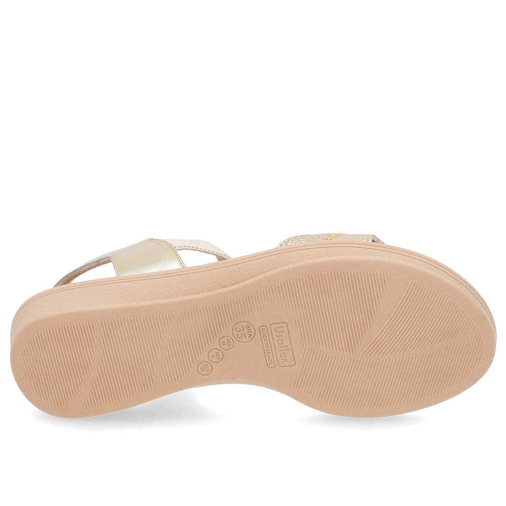 Sandália cabedal em couro soft slim e mini tresse na cor ouro light. O modelo possui tecnologia Calce Fácil, com modelagem inteligente em adaptar o calçado a ergonomia dos pés.